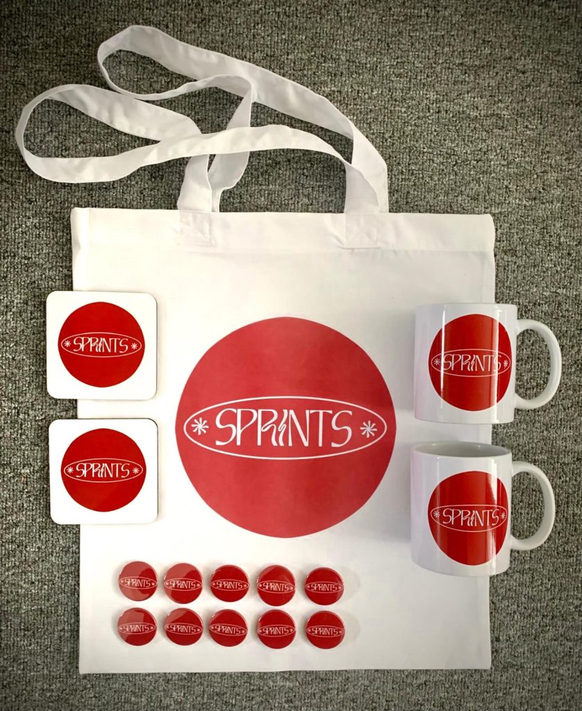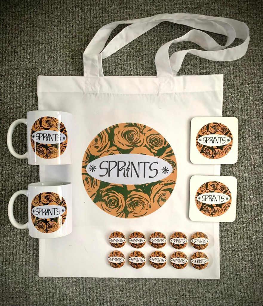 We’re open to anyone contacting us. But it is small numbers. What makes it more expensive is when you’ve got to start shipping things. But if somebody was for example going on tour and they were playing Brighton, then we could stop by and physically hand them over. We want it to grow, but we don’t want it to grow out of our control. At the moment it’s all done on the kitchen table. It’s quite fun that we can literally come up with a design, and then 10 minutes later, you’ve got a badge made, or you’ve got a tote bag printed. It’s great.