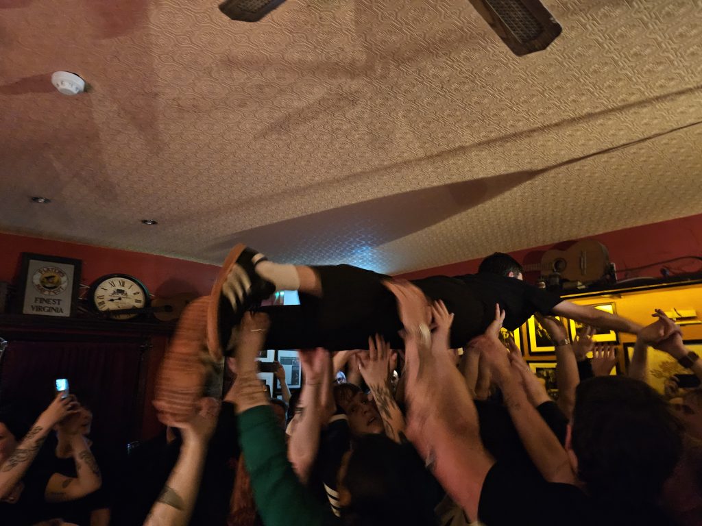 Gurriers are no one trick pony though. Listen to ‘Top of the Bill’, or ‘Prayers’ opening with the striking lyrics: “and now the Pope says his prayers, to the empty rows of chairs” and a quieter vibe yet still creating tension with the guitar riff accompanying vocalist Dan Hoff until the drum beat kicks in. It’s a sprawling track which live brings goosebumps. In addition we were treated to a new song ‘Dissolve’. How exciting to know that new music is already in the pipeline. The room at times bounced as one, such is the joy of an intimate venue. Bassist Charlie McCarthy was in and out the crowd and lead singer Dan crowd-surfed, the shared experience of live music is a beautiful thing, especially when the band and crowd seem to merge together as one.