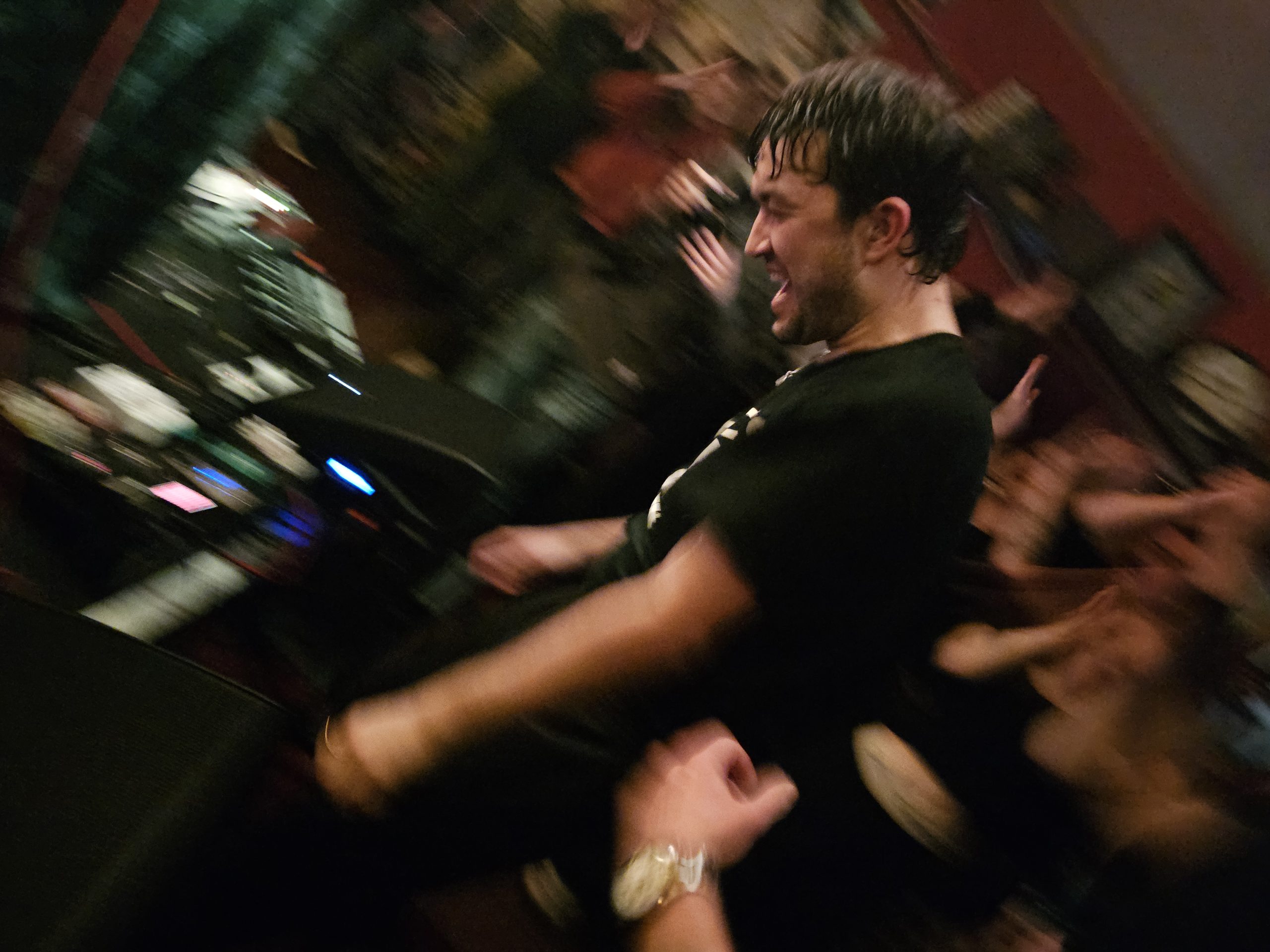 Gurriers are no one trick pony though. Listen to ‘Top of the Bill’, or ‘Prayers’ opening with the striking lyrics: “and now the Pope says his prayers, to the empty rows of chairs” and a quieter vibe yet still creating tension with the guitar riff accompanying vocalist Dan Hoff until the drum beat kicks in. It’s a sprawling track which live brings goosebumps. In addition we were treated to a new song ‘Dissolve’. How exciting to know that new music is already in the pipeline. The room at times bounced as one, such is the joy of an intimate venue. Bassist Charlie McCarthy was in and out the crowd and lead singer Dan crowd-surfed, the shared experience of live music is a beautiful thing, especially when the band and crowd seem to merge together as one.